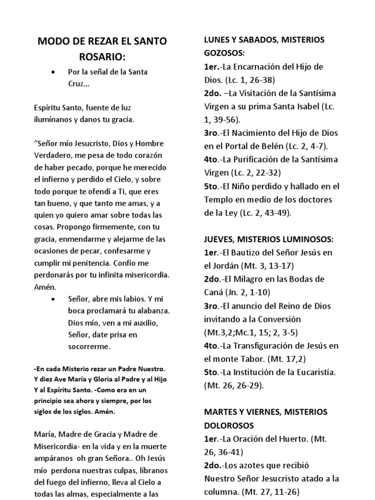 En teoría el Rosario es una combinación de oraciones vocales y a la vez meditadas. Santo rosario completo para imprimir pdf.